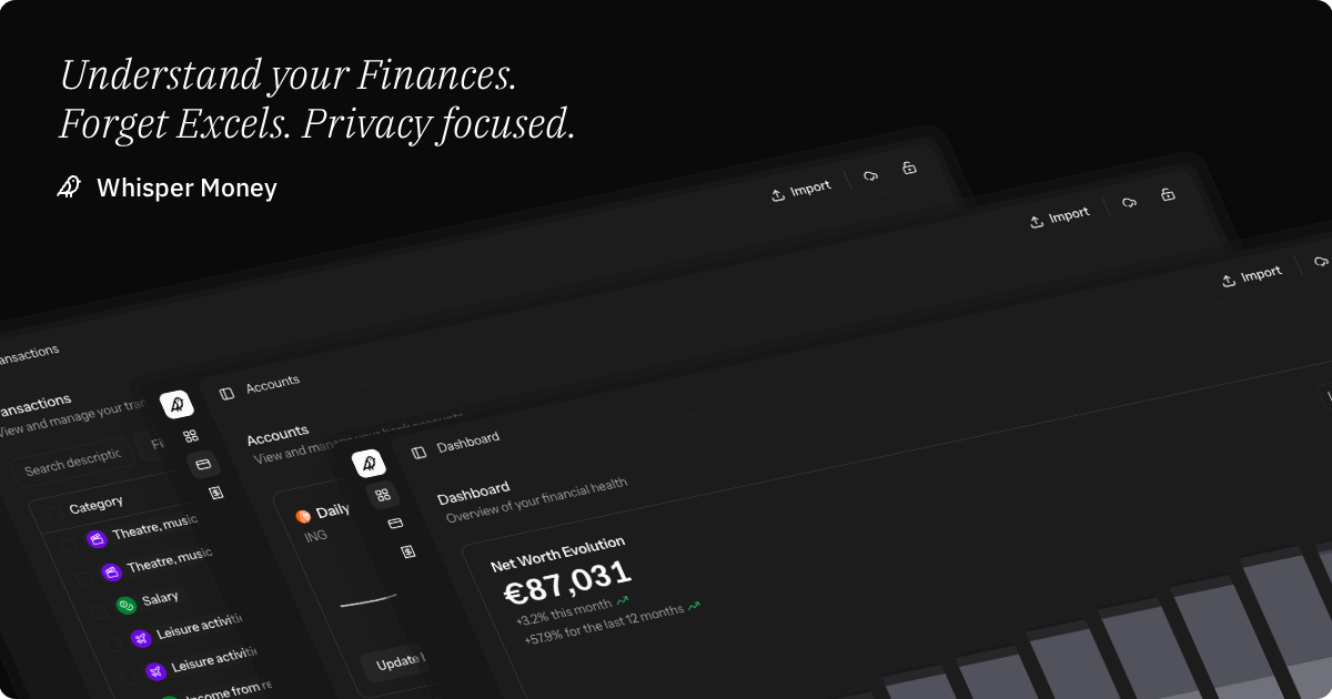 - Everything in one place. Banks, Binance, Bitpanda, real estate, index funds. Your full net worth. Not just last month’s coffee spend.